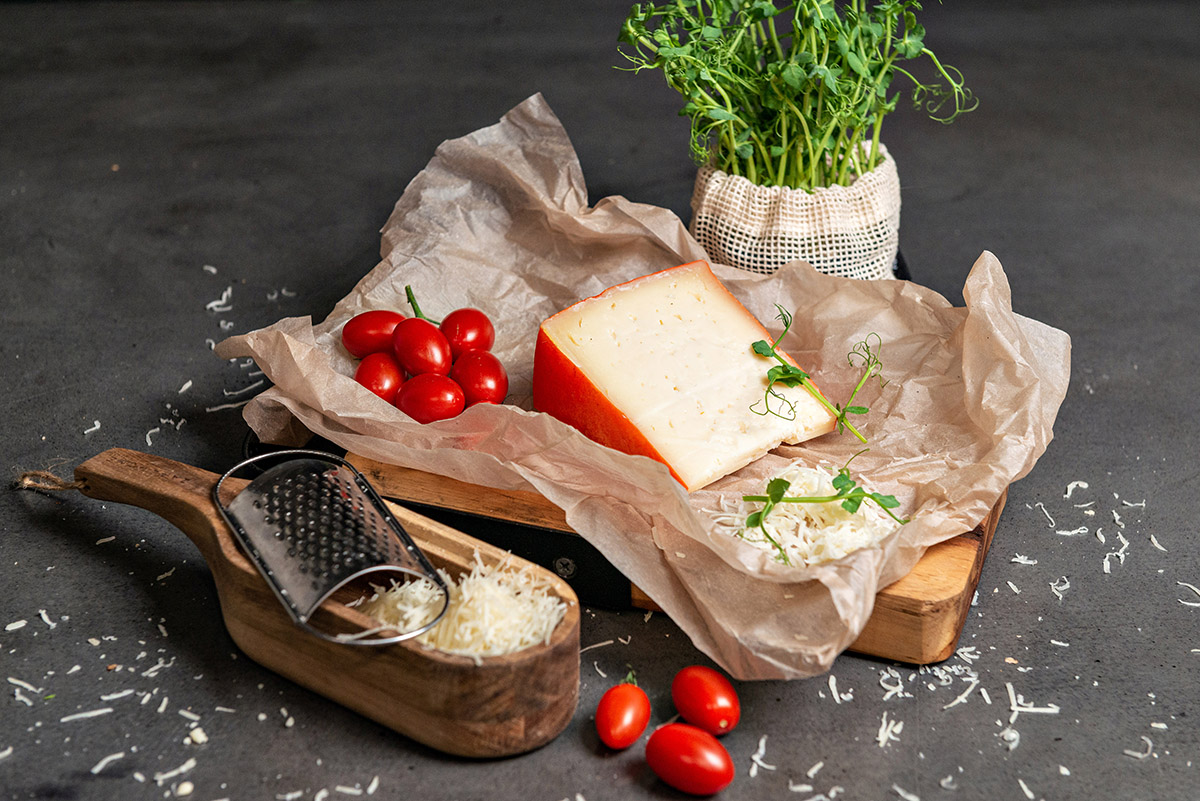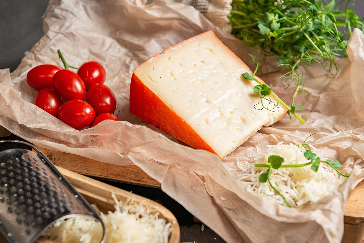 - Полутвёрдый сыр изготавливается из пастеризованного коровьего молока с внесением молокосвёртывающего сычужного фермента и закваски мезофильных молочнокислых бактерий.