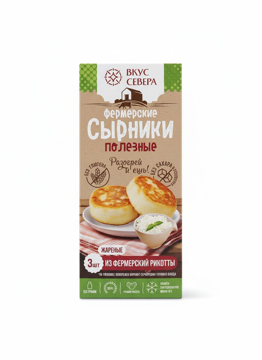 сыр «Рикотта» (сыворотка молочная (подсырная), молоко цельное пастеризованное, регулятор кислотности - кислота лимонная, соль пищевая, разрыхлитель – сода пищевая), яйцо пищевое столовое, мука рисовая, сироп топинамбура (клубни топинамбура, вода), масло растительное подсолнечное, ароматизатор пищевой ванилин, соль