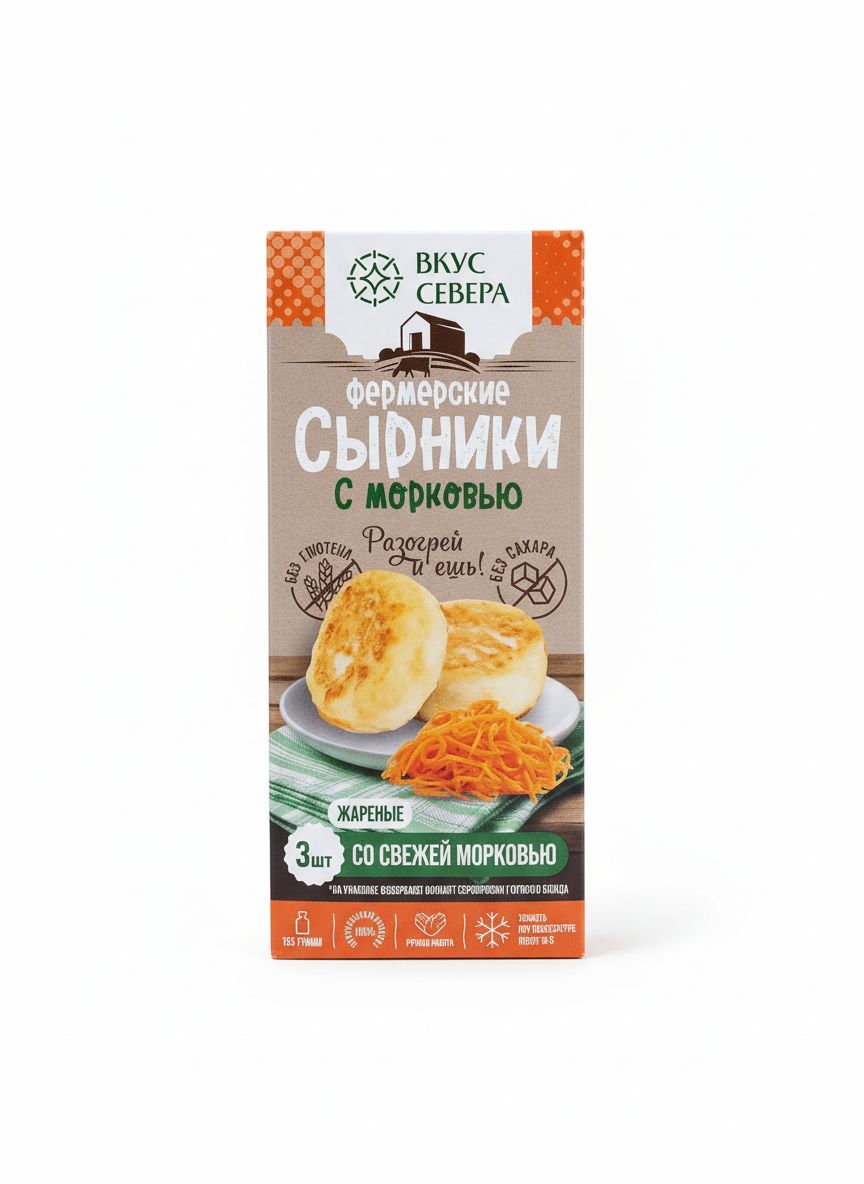 сыр «Рикотта» (сыворотка молочная (подсырная), молоко цельное пастеризованное, регулятор кислотности - кислота лимонная, соль пищевая, разрыхлитель – сода пищевая), морковь, яйцо пищевое столовое, мука рисовая, сироп топинамбура (клубни топинамбура, вода), масло растительное подсолнечное, ароматизатор пищевой ванилин, соль