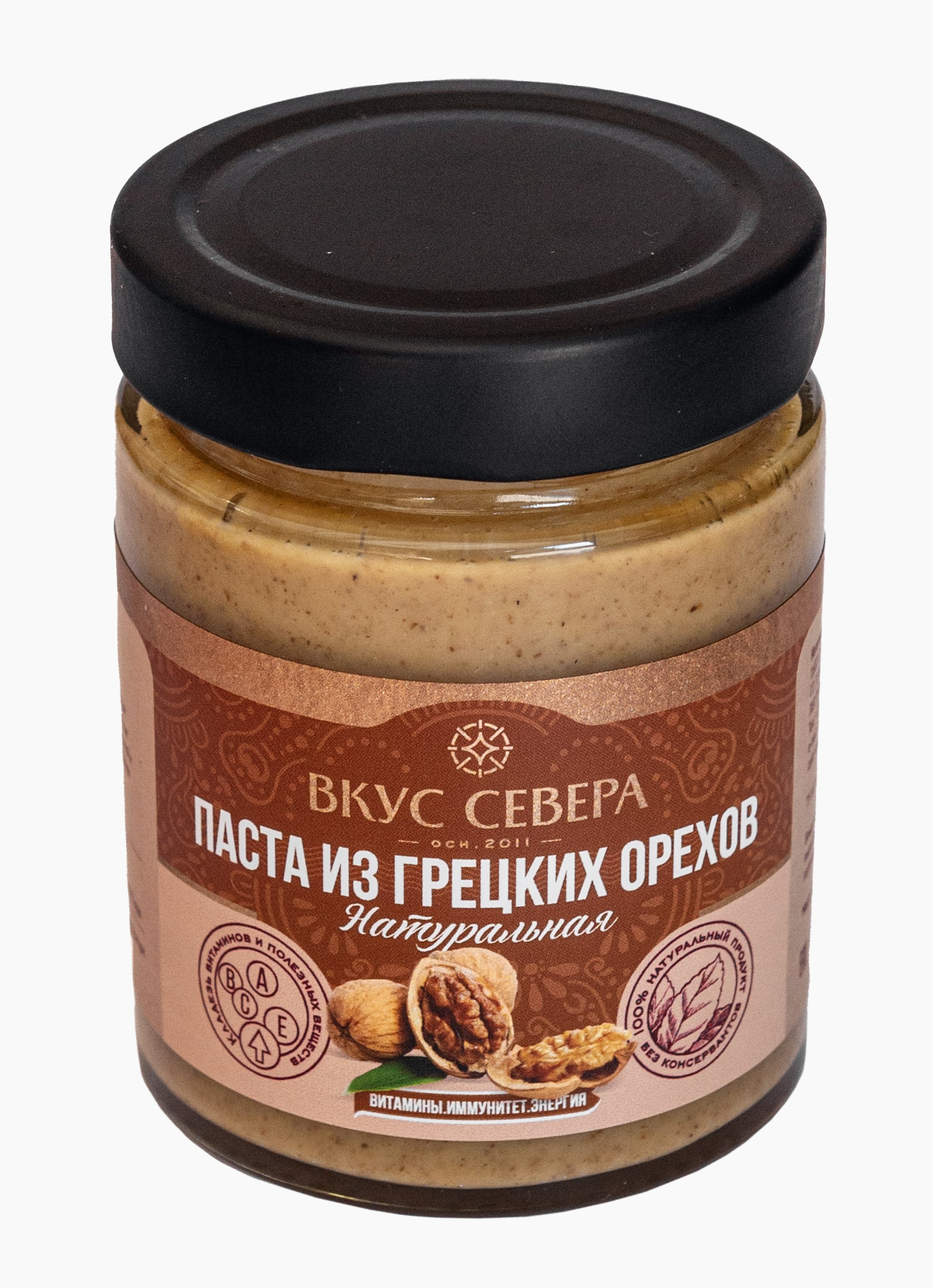В составе используют свежеобжаренный грецкий орех, который содержит жирорастворимые витамины А, Е, группы В, С, РР, К и минеральными веществами: цинк, йод. Рекомендуется для улучшения работы иммунной системы, эндокринной, половых желёз, щитовидной железы. Полезен при заболеваниях кожи. Улучшает обмен веществ, приводит в норму уровень холестерина. Пасты со временем могут расслаиваться, что свидетельствует о 100% натуральном составе, без добавления консервантов и стабилизаторов.