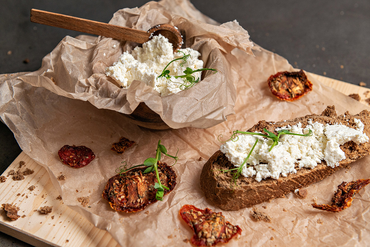 - Рикотту производят из тёплой молочной сыворотки — жидкости, которая остаётся после створаживания молока, приготовления моцареллы или других сыров.