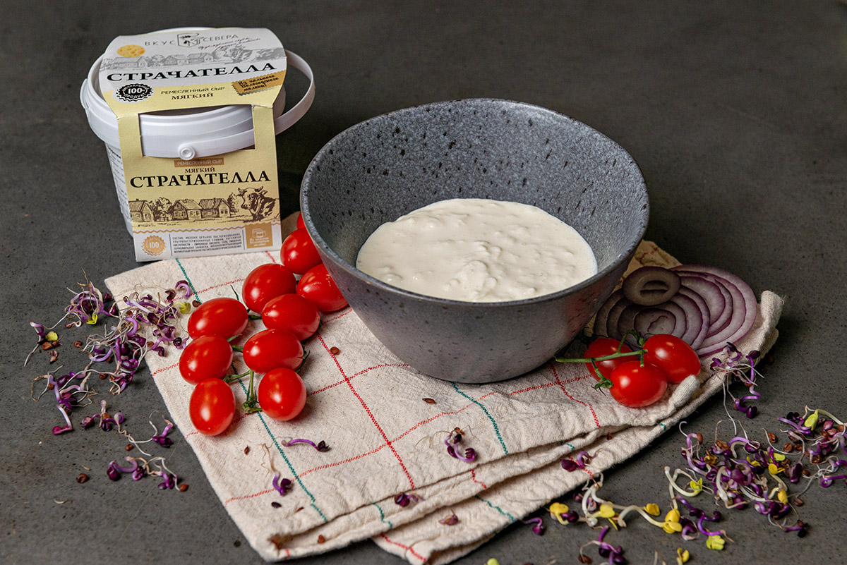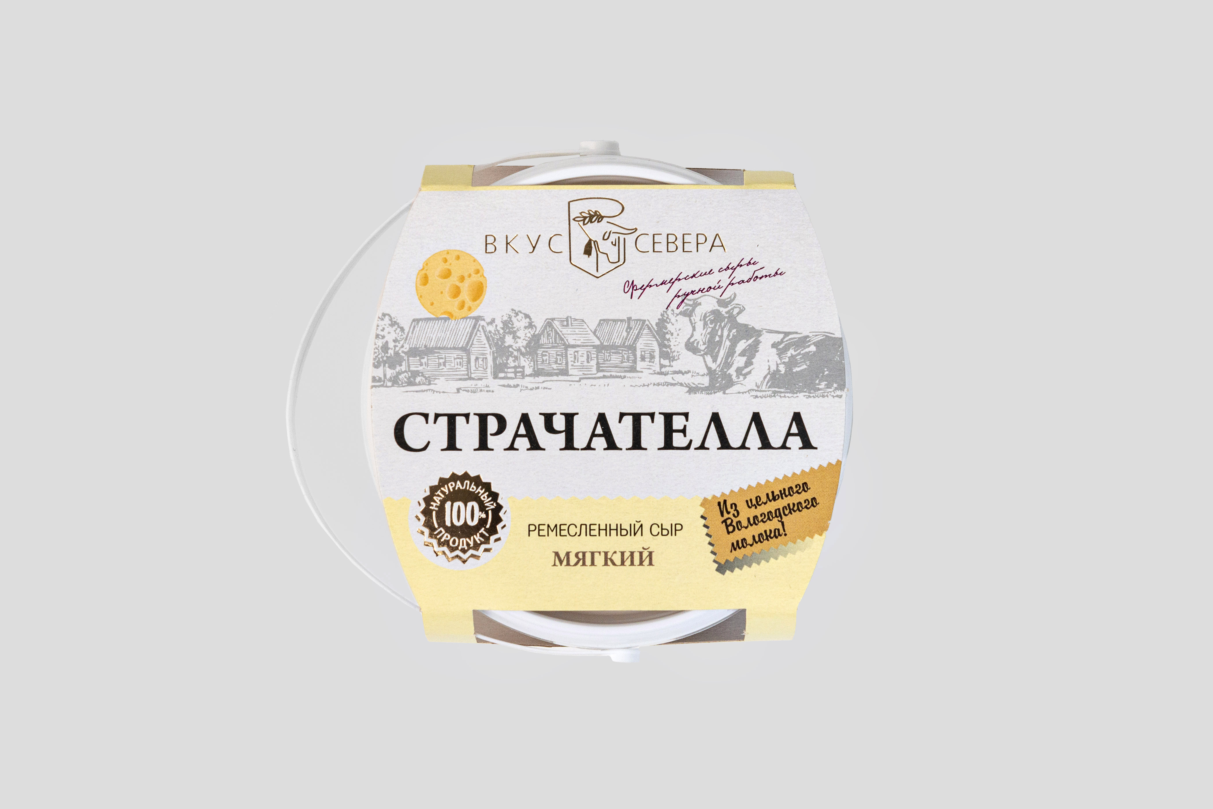 Страчателла, это молодой итальянский сыр, который относится к категории мягких сыров. Имеет пастообразную форму, с легко различимой текстурой сырных волокон в сливках. По вкусу Страчателла от «Вкус Севера» заслуживает высшей оценки и сыр изготовлен с соблюдением всех традиционных требований к ее приготовлению и ингредиентам.