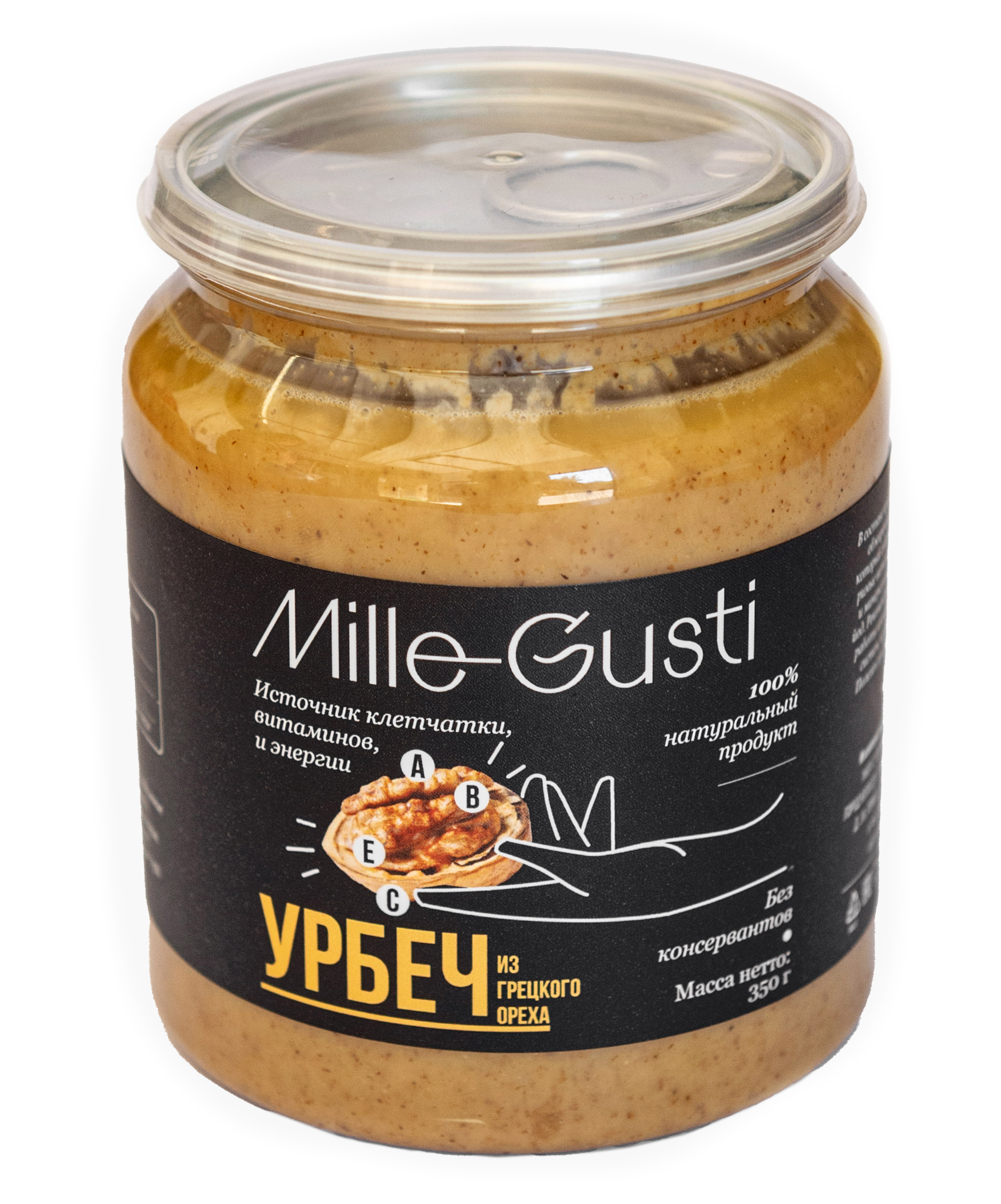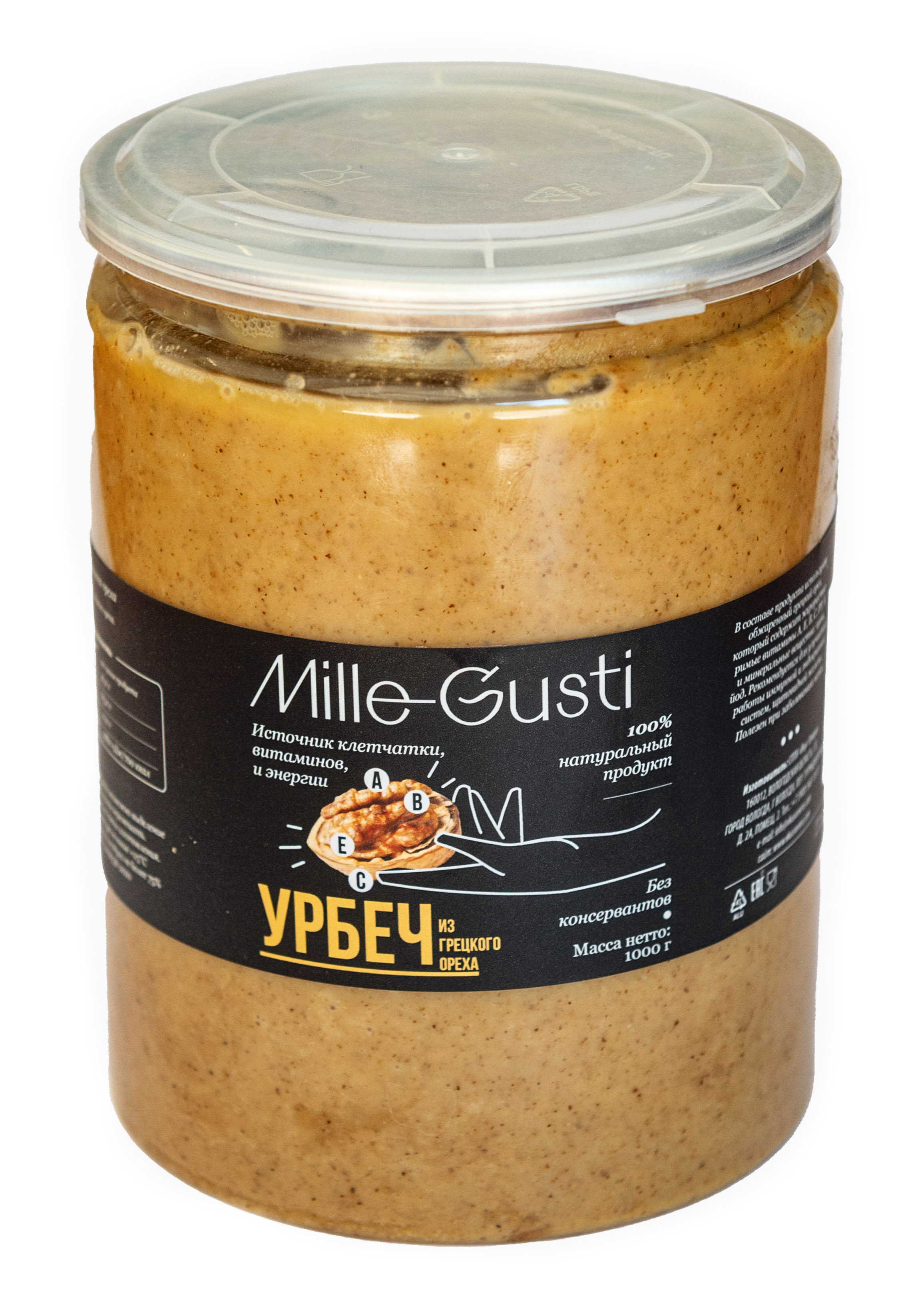 В составе используют свежеобжаренный грецкий орех, который содержит жирорастворимые витамины А, Е, группы В, С, РР, К и минеральными веществами: цинк, йод. Рекомендуется для улучшения работы иммунной системы, эндокринной, половых желёз, щитовидной железы. Полезен при заболеваниях кожи. Улучшает обмен веществ, приводит в норму уровень холестерина. Пасты со временем могут расслаиваться, что свидетельствует о 100% натуральном составе, без добавления консервантов и стабилизаторов.