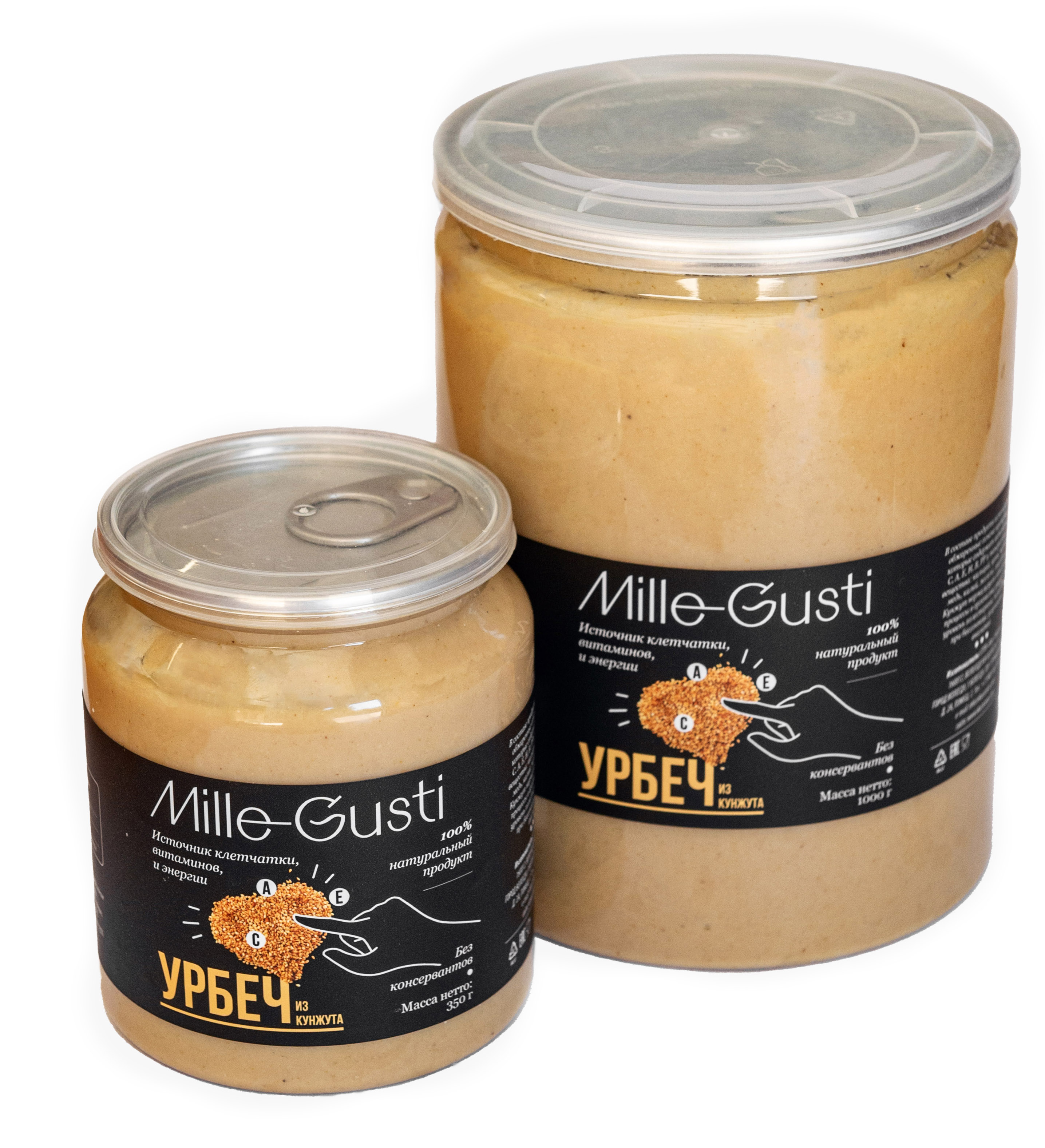 В составе используют обжаренные семена кунжута, которые содержат витамины С, А, Е, Н, группы В, РР и минеральные вещества: кальций, цинк, магний, медь, калий, железо, лецитин. Кунжут нормализует обменные процессы в организме, снижает уровень холестерина, помогает при бессоннице, улучшает внимание и концентрацию, выводит токсины, природный источник кальция. Пасты со временем могут расслаиваться, что свидетельствует о 100% натуральном составе, без добавления консервантов и стабилизаторов.